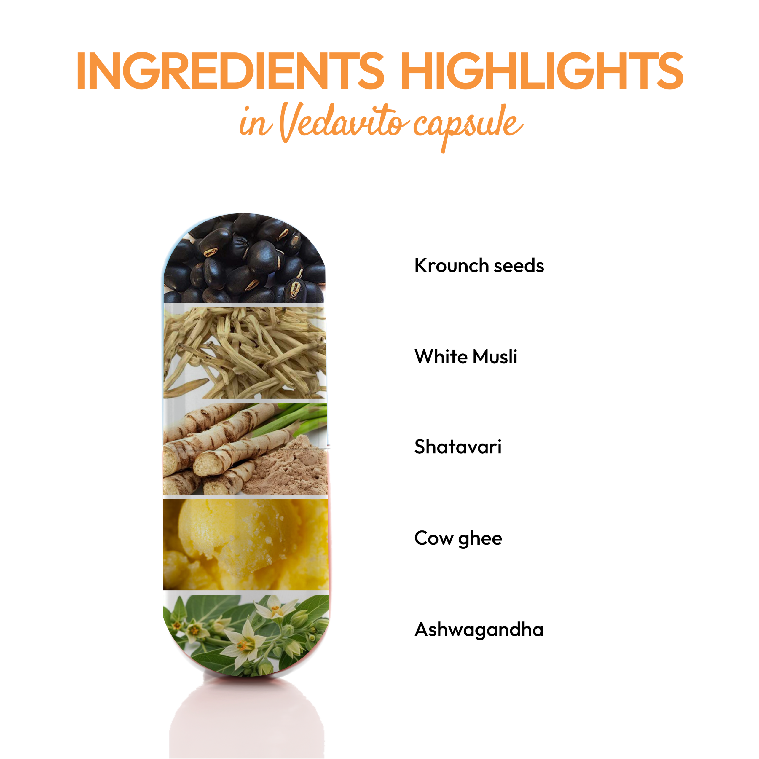 These plant-based capsules are easy to absorb, non-habit forming, and suitable for regular use. Unlike synthetic multivitamins, Vedavito provides bioavailable nutrients in their natural form, without any artificial binders, preservatives, or polishing agents. Ideal for working professionals, fitness enthusiasts, and health-conscious men, Vedavito is your trusted green ally for everyday strength, clarity, and resilience.