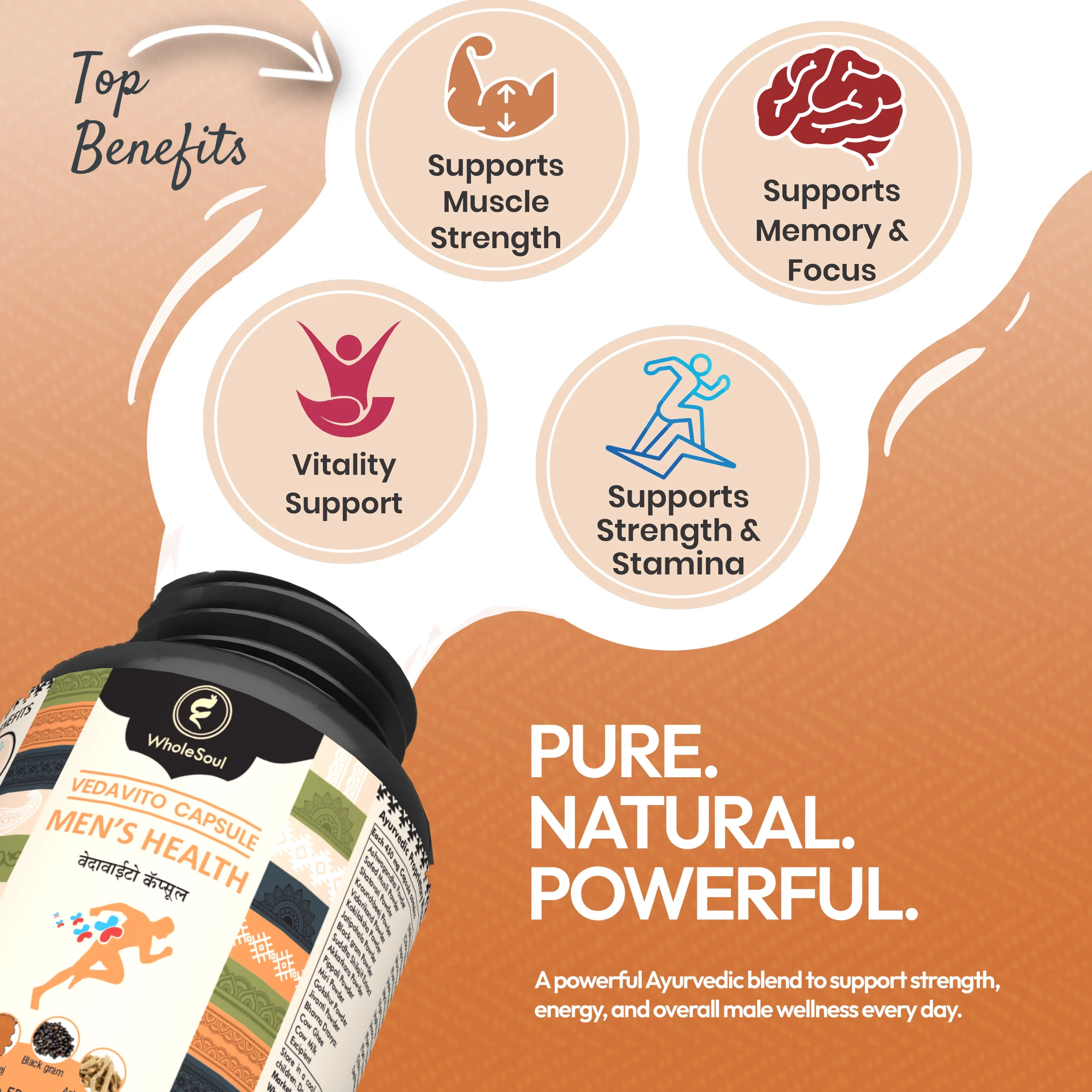 WholeSoul Vedavito Capsules – Men’s Complete Ayurvedic Multivitamin | Strength, Stamina & Immunity Support | 100% Pure Wellness Formula