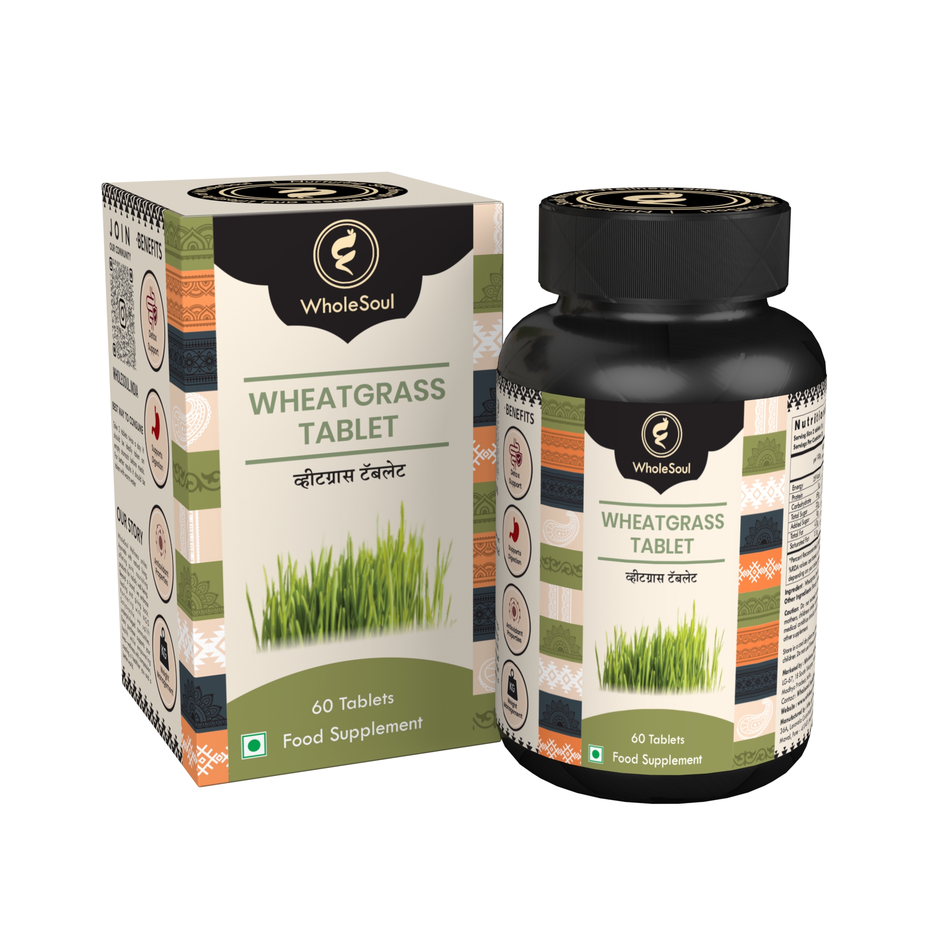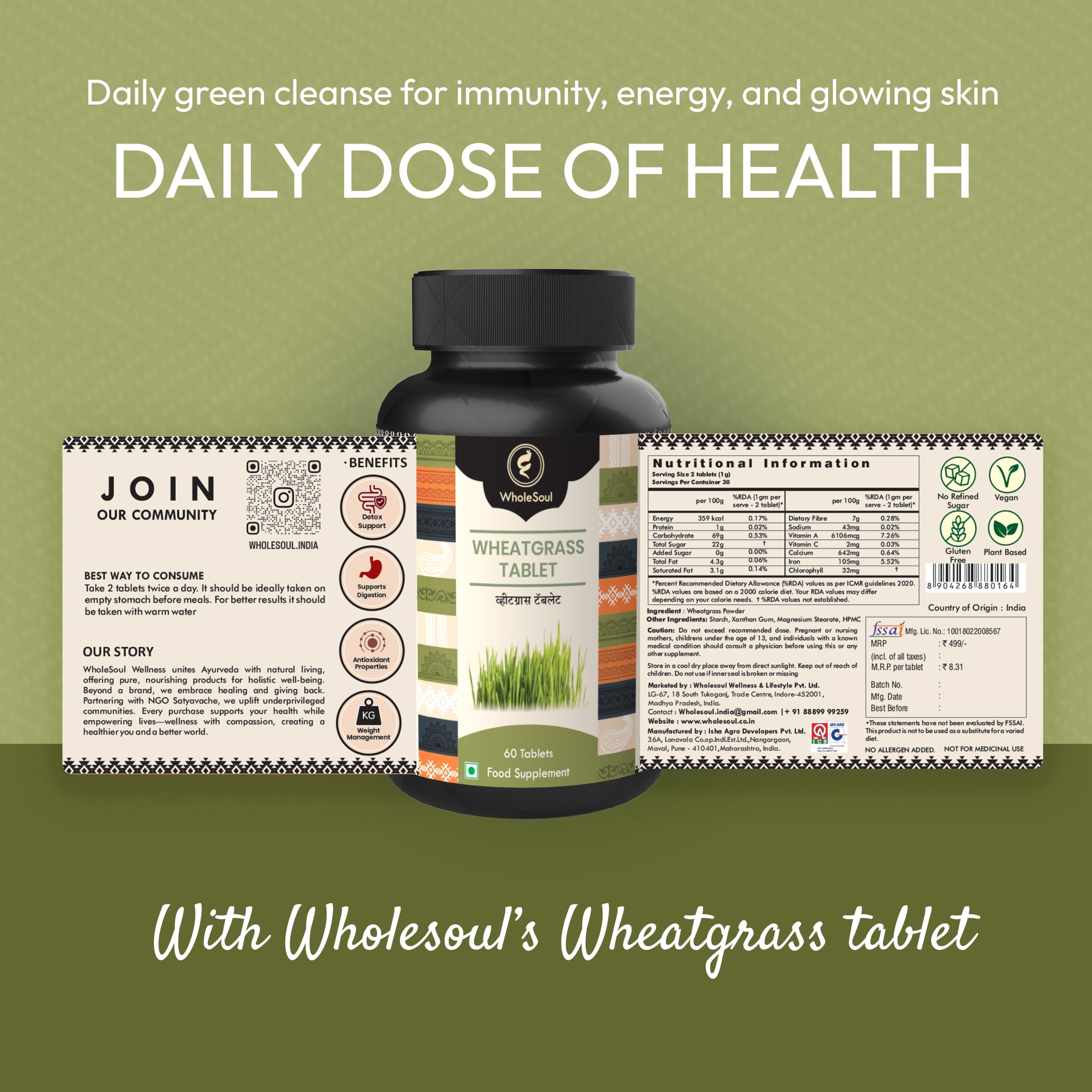 WholeSoul Wheatgrass Tablets – Natural Detox & Energy Boost | 100% Pure Ayurvedic Formula | Alkalizing Supergreen Supplement